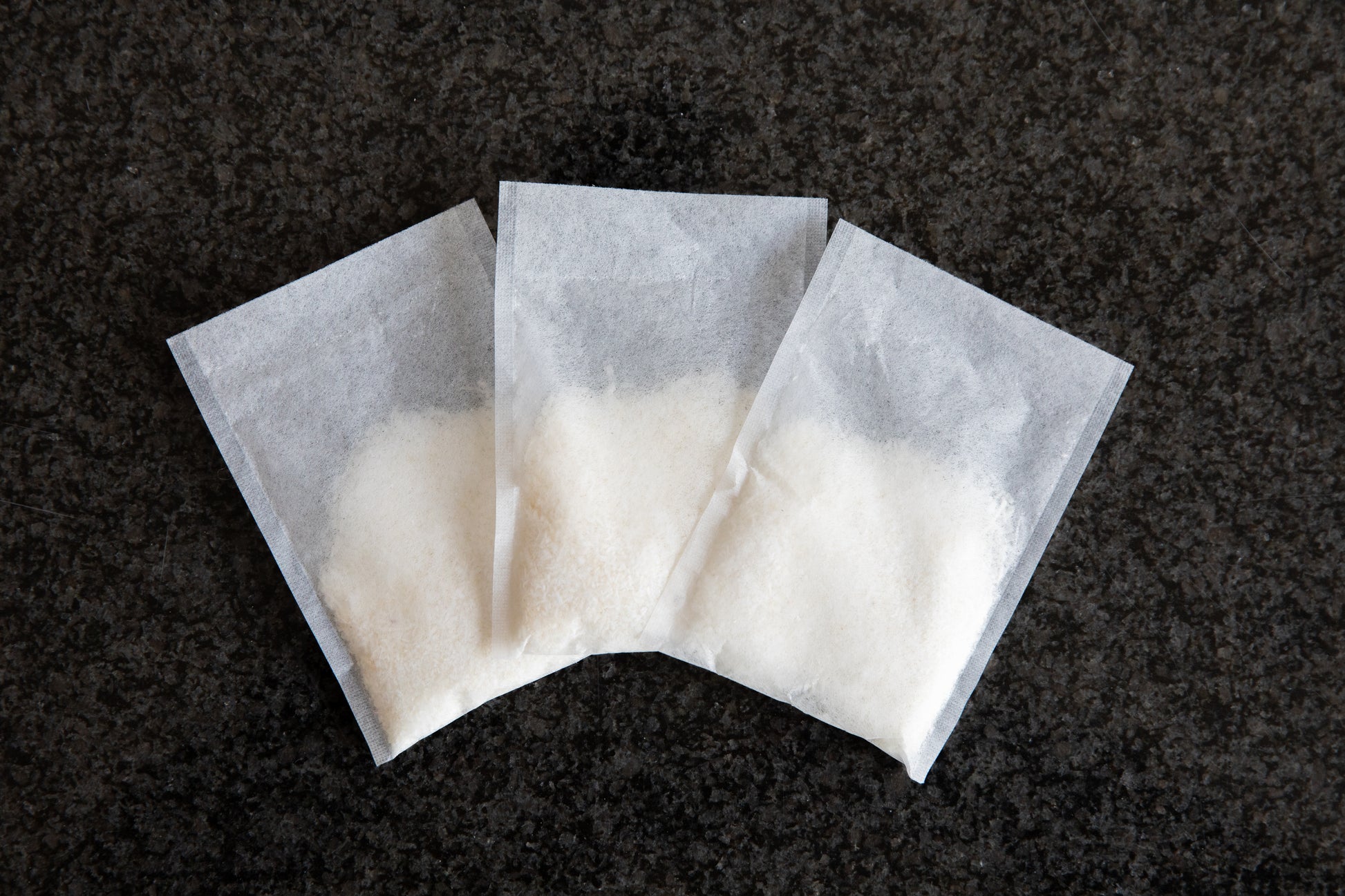 ✔️ お湯に入れて揉み揉みすると、乳白色のココナッツミルクが広がります✨